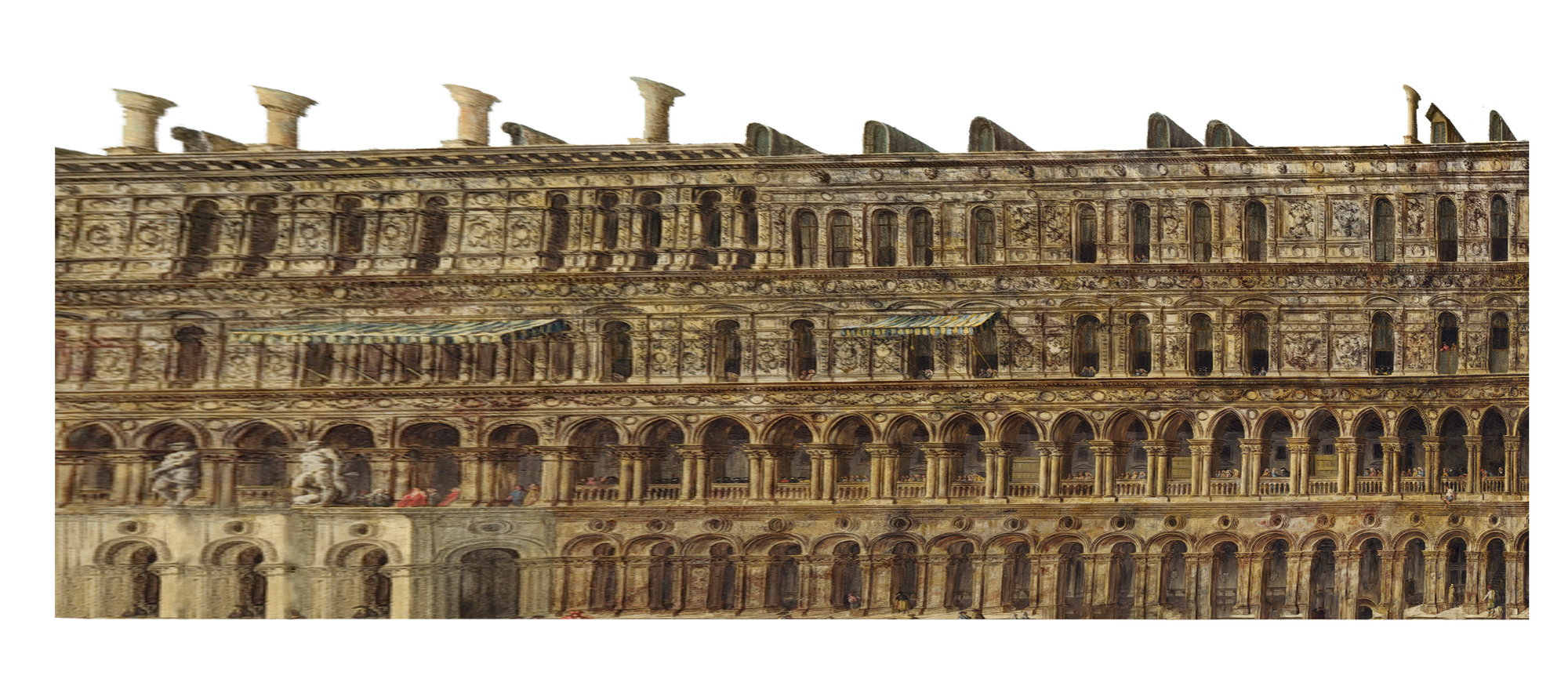 For example, here is the finished asset for the wall on the right. Because it was initially shown at an angle, the lighting and direction of the details have been retained (like with the pillars). This asset was then positioned correctly in the 3D space to restore its angle, all the while developing a believable constructed environment.